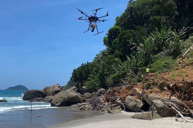 Drones com sementes de árvore vão recuperar áreas de deslizamento de terra em São Sebastião